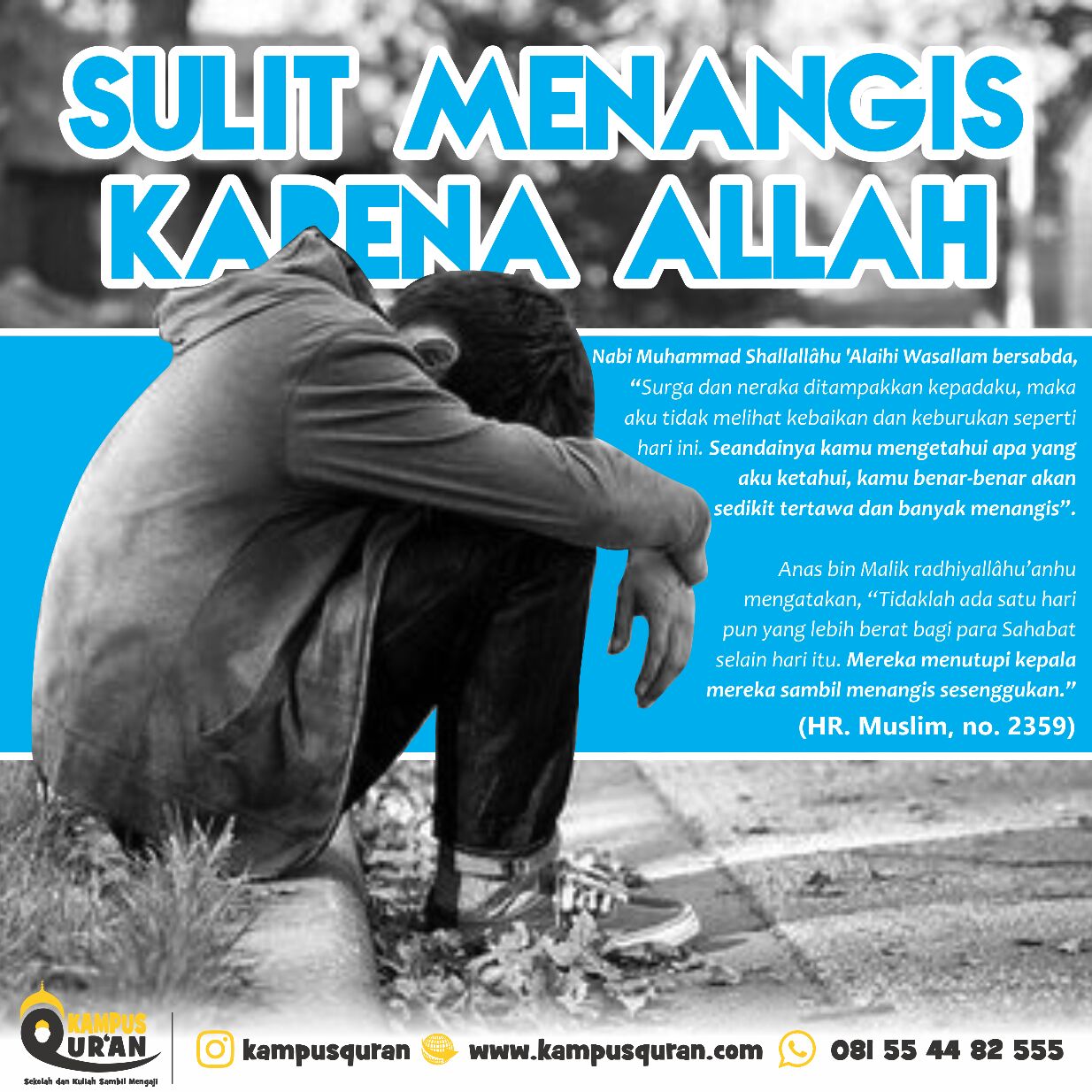Maka tangisilah diri kita, tangisilah hati kita yang mungkin sudah mati dan tangisilah jiwa kita yang tidak bisa menampung sedikit saja tetesan keimanan, serta tangisilah mayat badan kita yang kita seret  berjalan merajalela di muka bumi karena ia hakikatnya telah mati. Semoga dengan menangisi diri kita, Allah berkenan membuka sedikit hidayah kemudian menancapkannya dan bertengger direlung hati hamba yang berjiwa hanif.